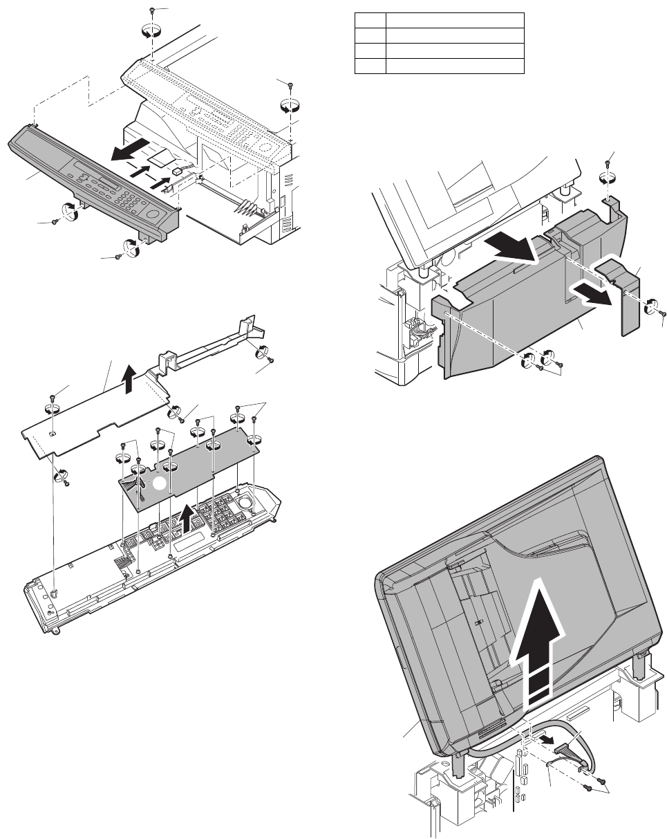 2) Remove the screws (4 pcs.), the harness, and the operation