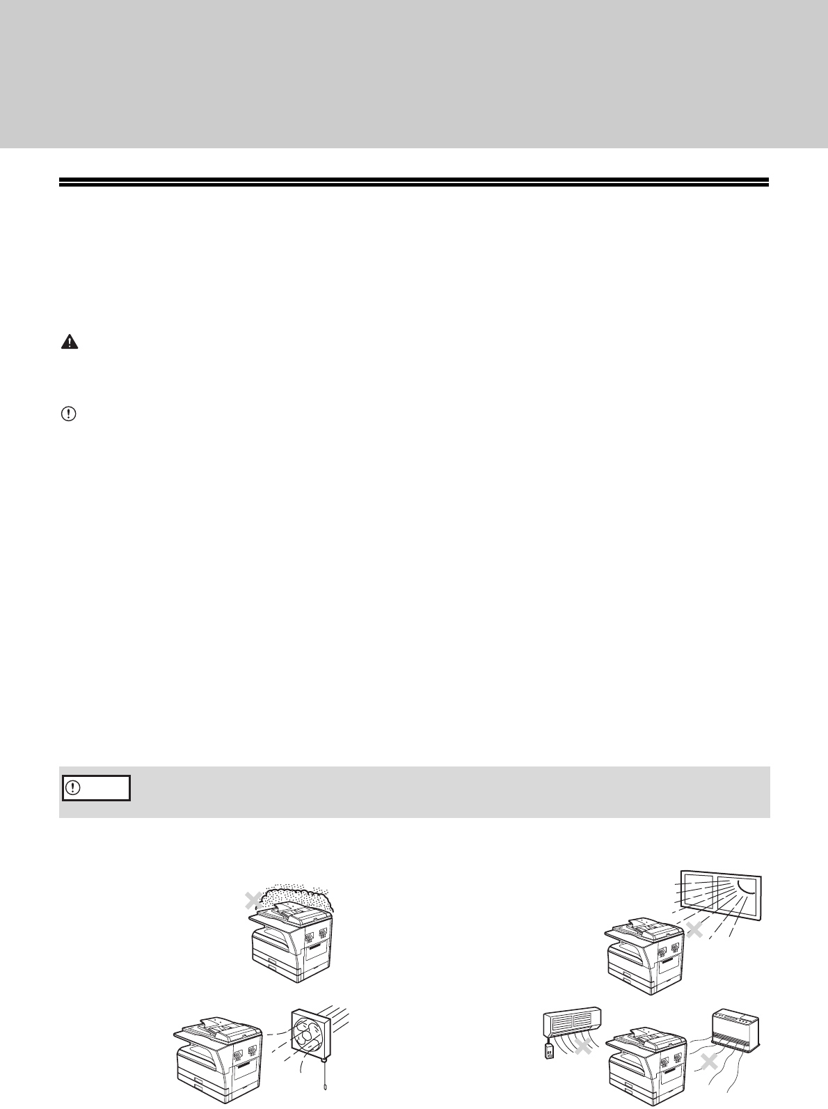 in this condition will cause poor copy quality and malfunctions. Leave the machine at room temperature for at least