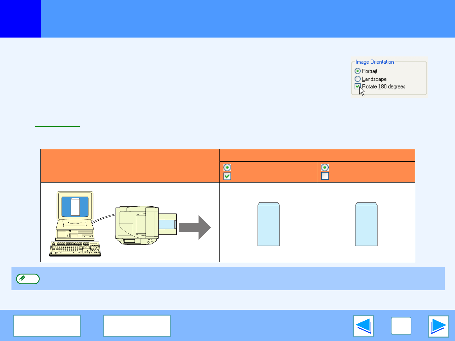 This feature is used to enable correct printing on envelopes and other paper with flaps that can