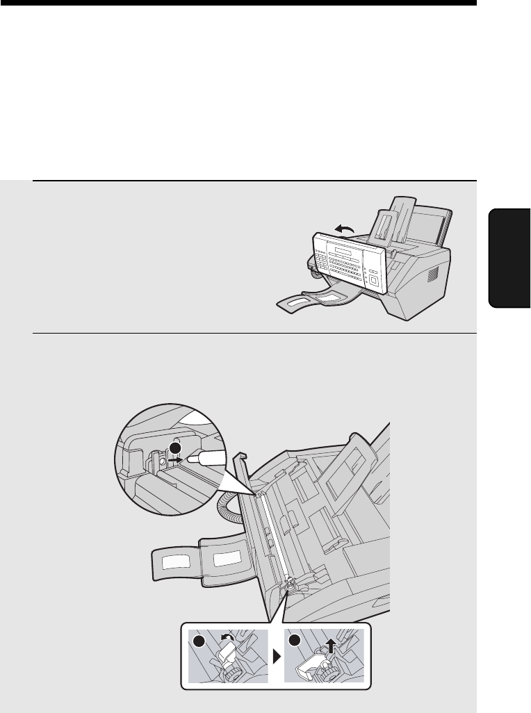 2 Rotate the lever toward you and down (➊), and then pull the lever and