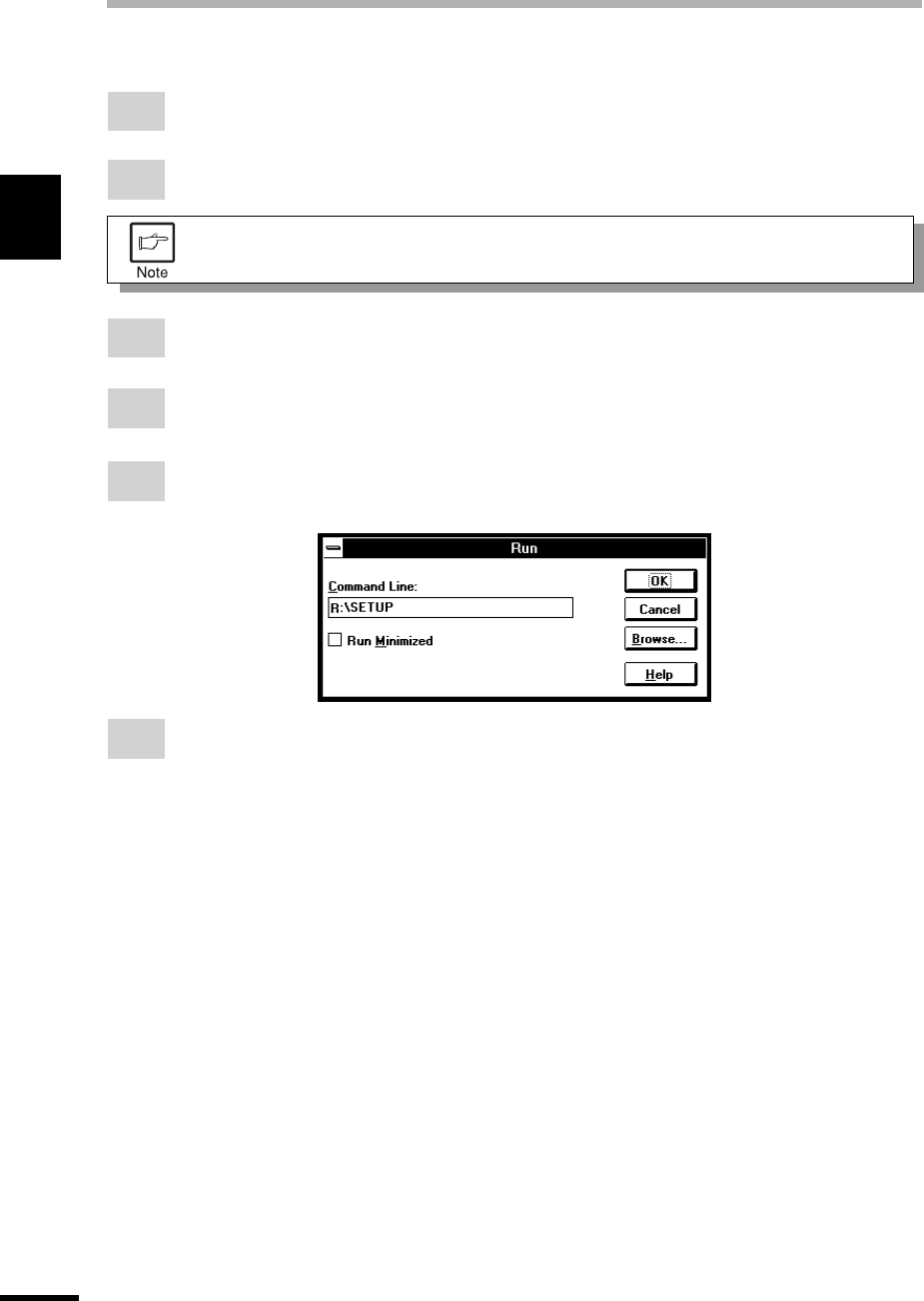 Type R:\SETUP (if the CD-ROM is designated as drive R) in the command line box