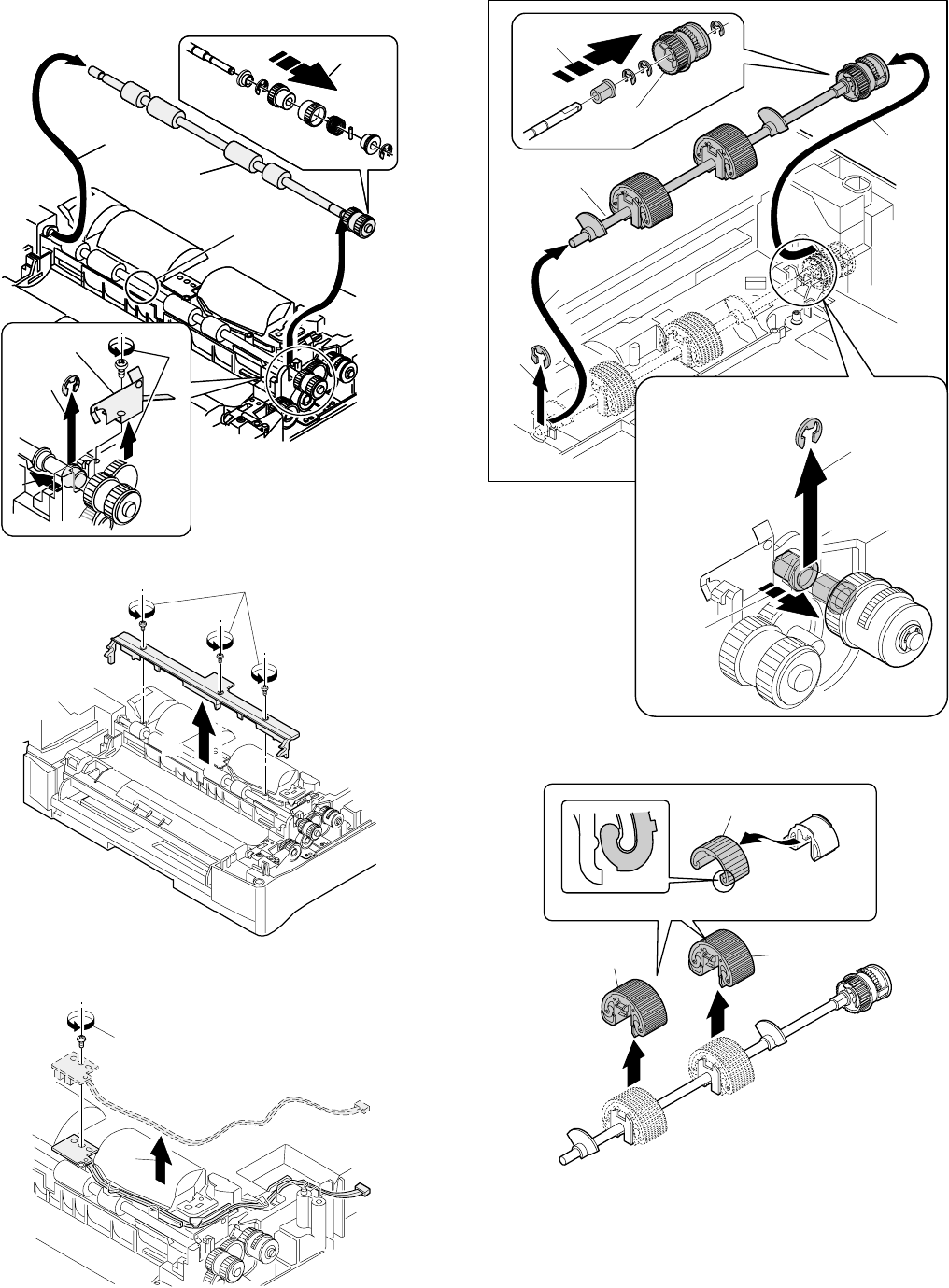 36) Remove two E-rings and remove the paper feed roller.