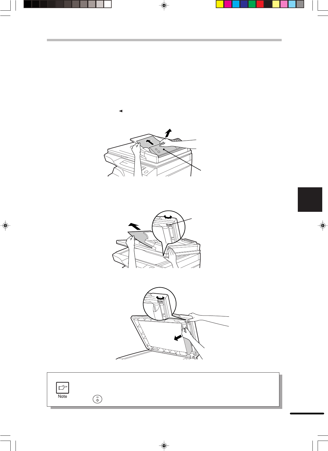 If the misfed original cannot be easily removed, proceed to (C) without pulling the original