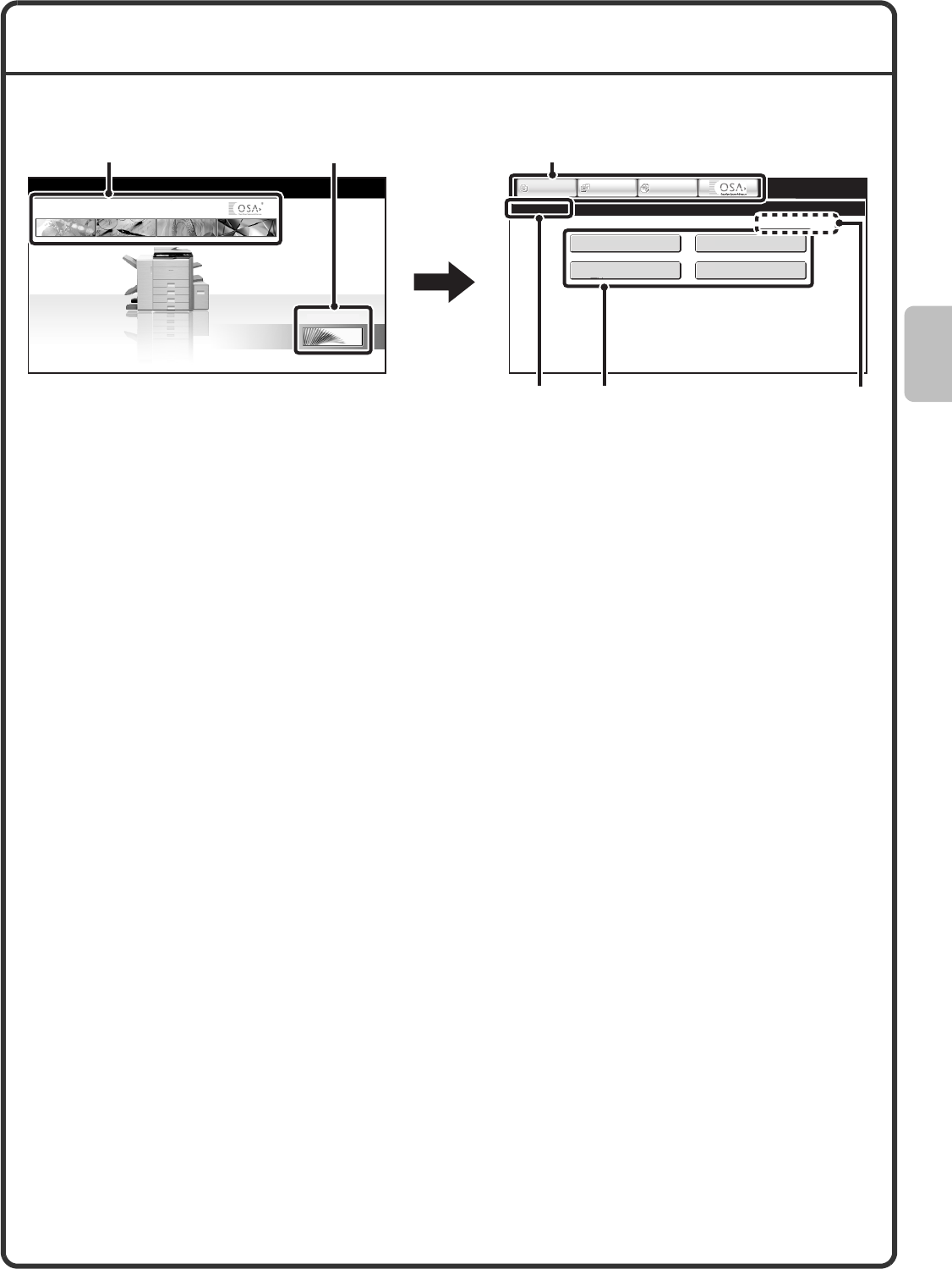 When the [HOME] key is pressed on the operation panel, the home screen appears in the touch panel.