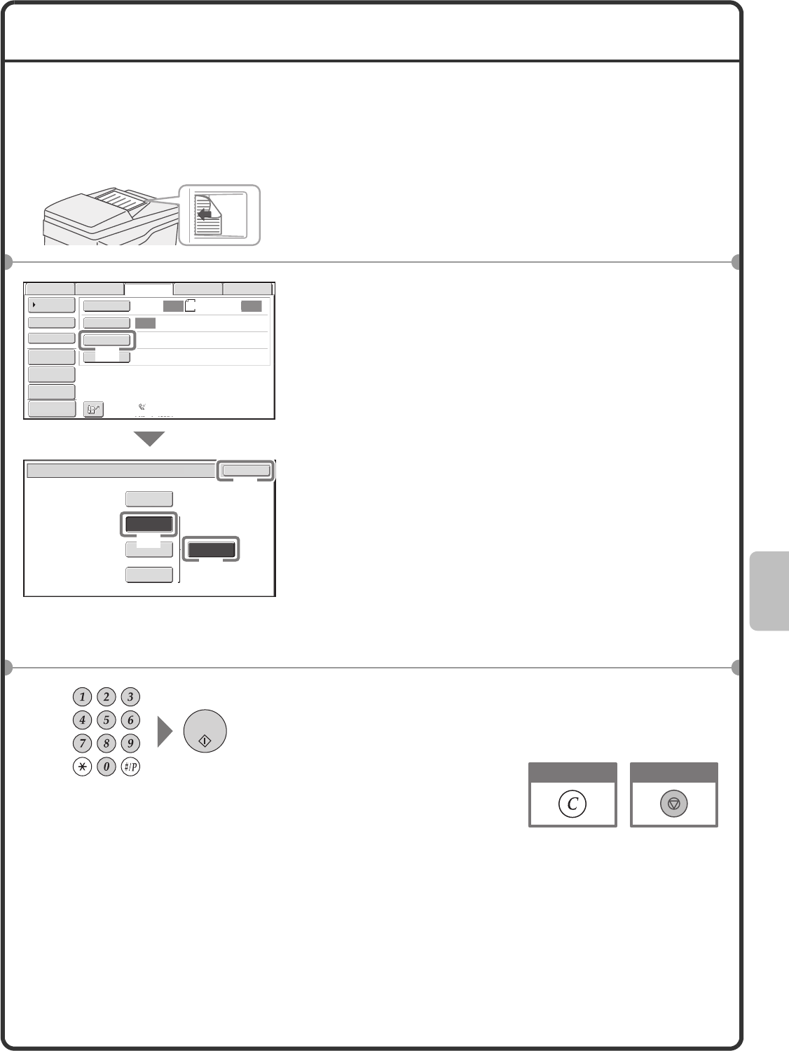 The following example explains how to set the resolution to [Fine] and [Half Tone] when sending an original with