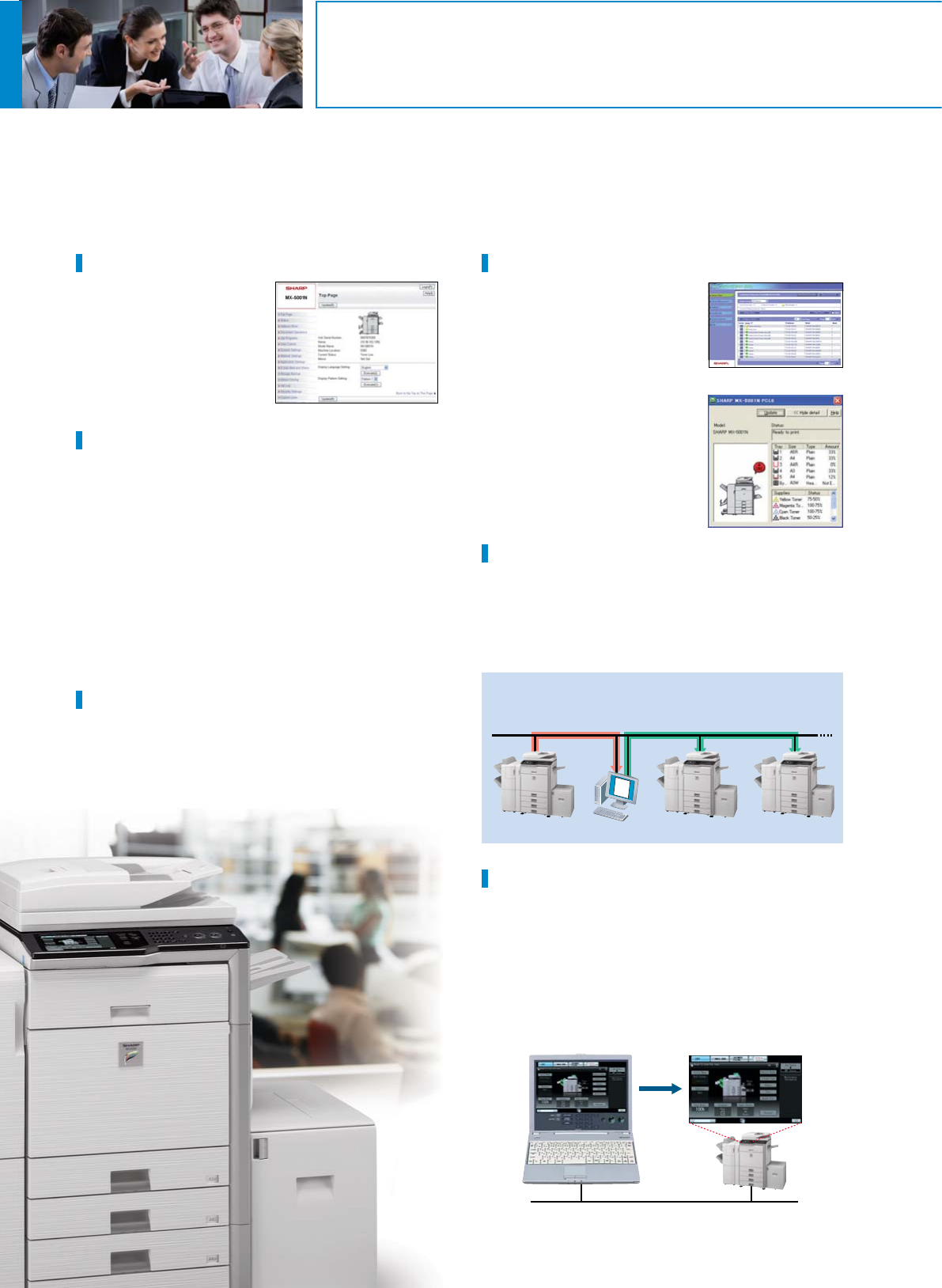 The MX-5001N/5000N allows for easy programming of complex settings and makes it possible for a system administrator