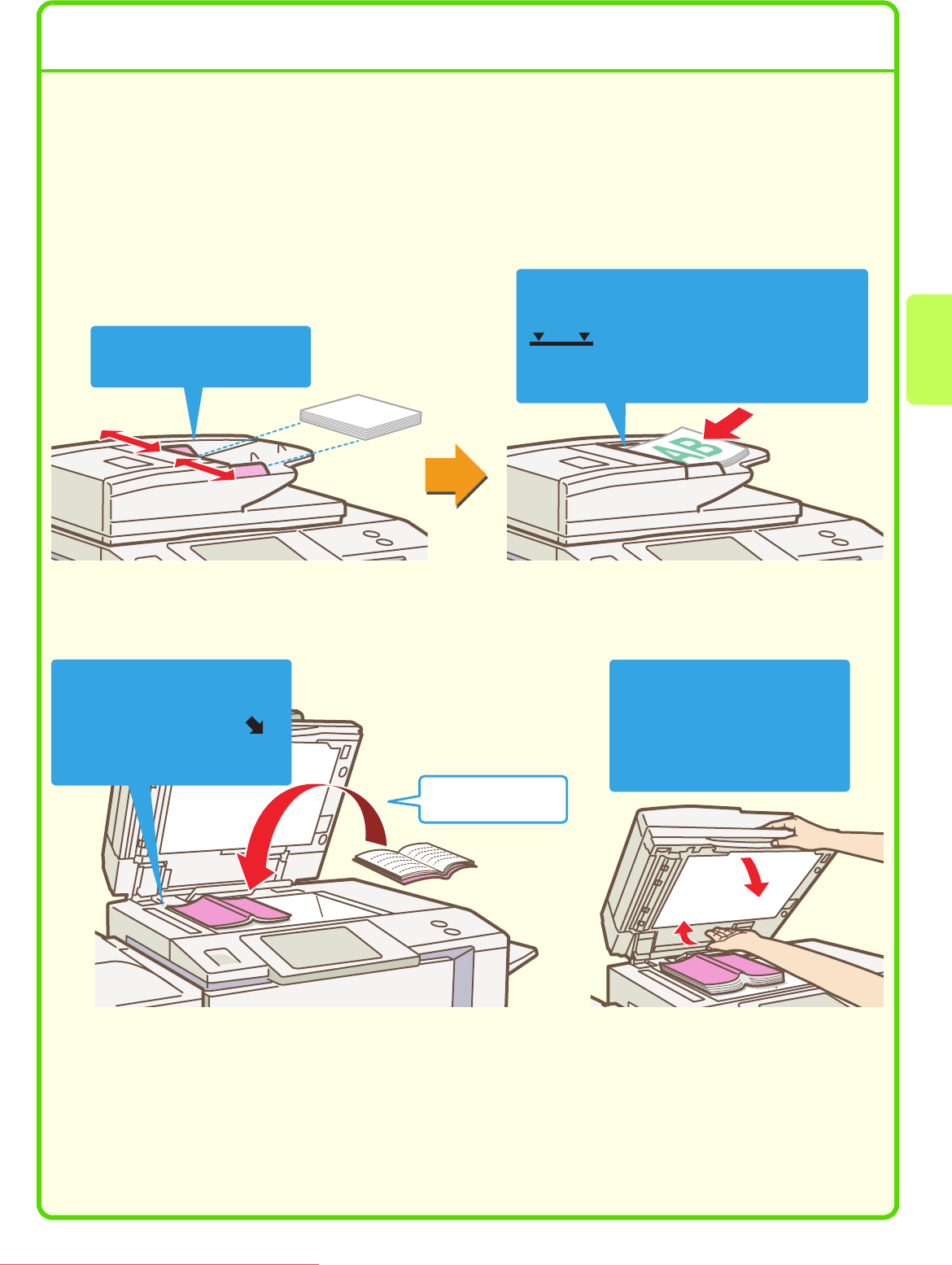 Place the originals face up with the edges