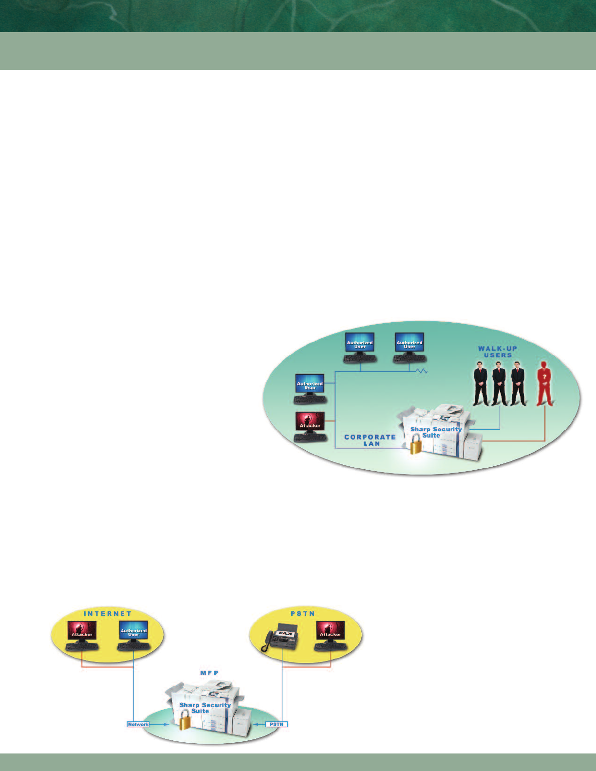scan data or print data can be intercepted. In the worst case, a user from the outside can obtain confidential information, unleash a