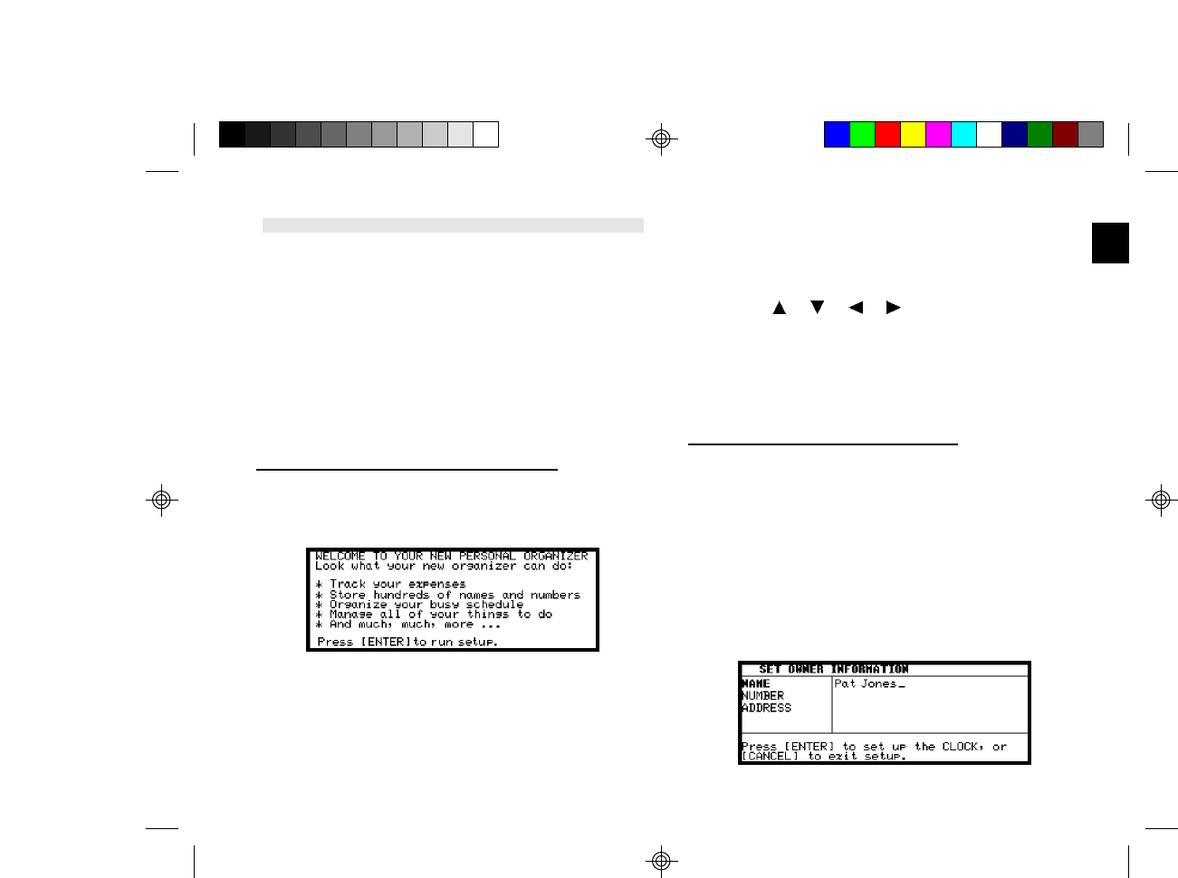 Press [ENTER] to proceed with setting the Owner Information