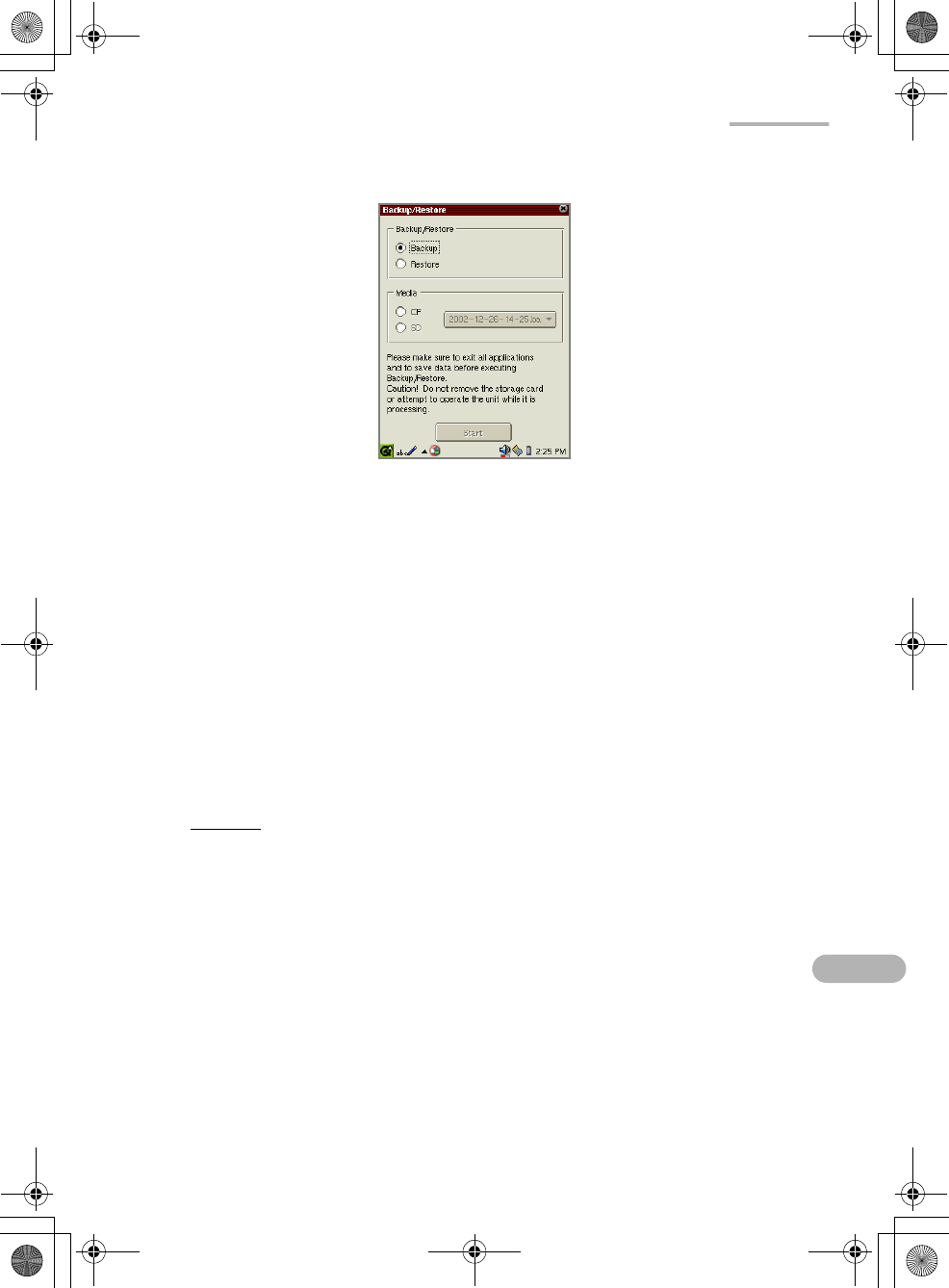 In the Settings folder of the Home screen, tap the “Backup Restore” application