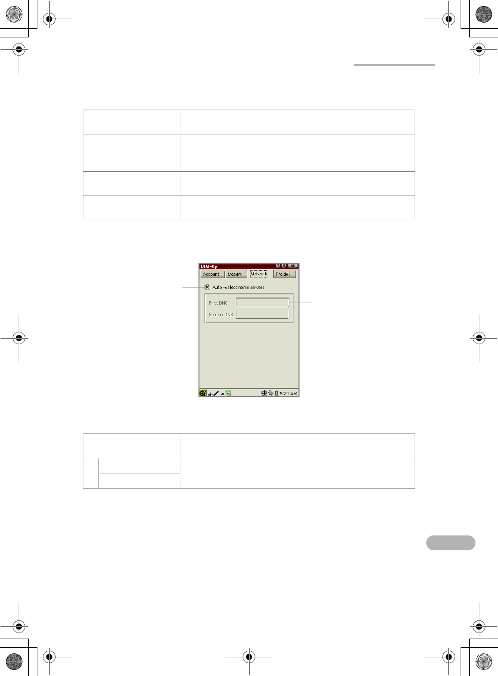The Dial-up screen for Network options will be displayed.