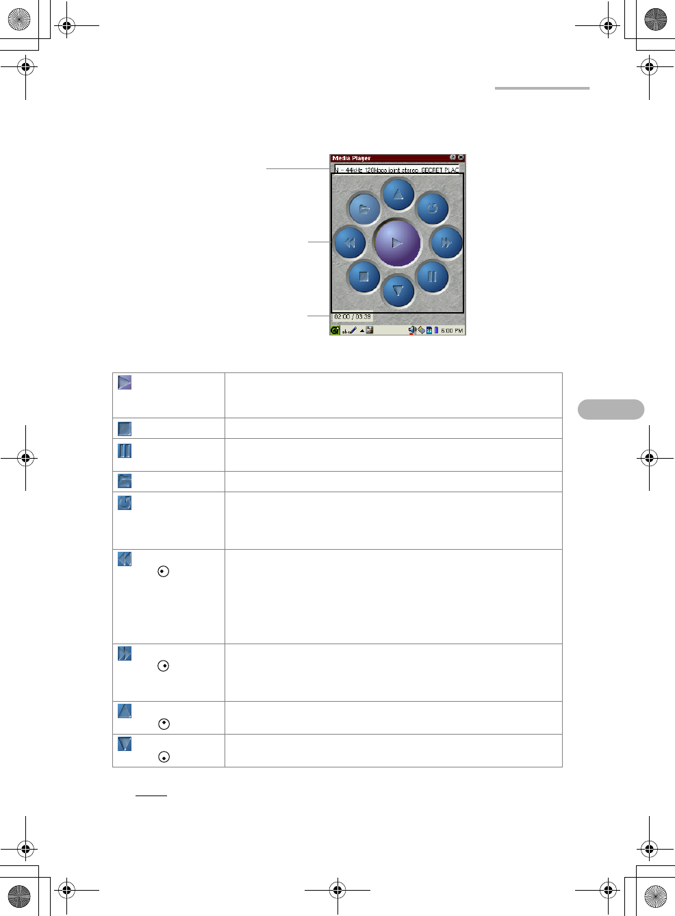 (Play) Plays the current file from the top or resumes playback if