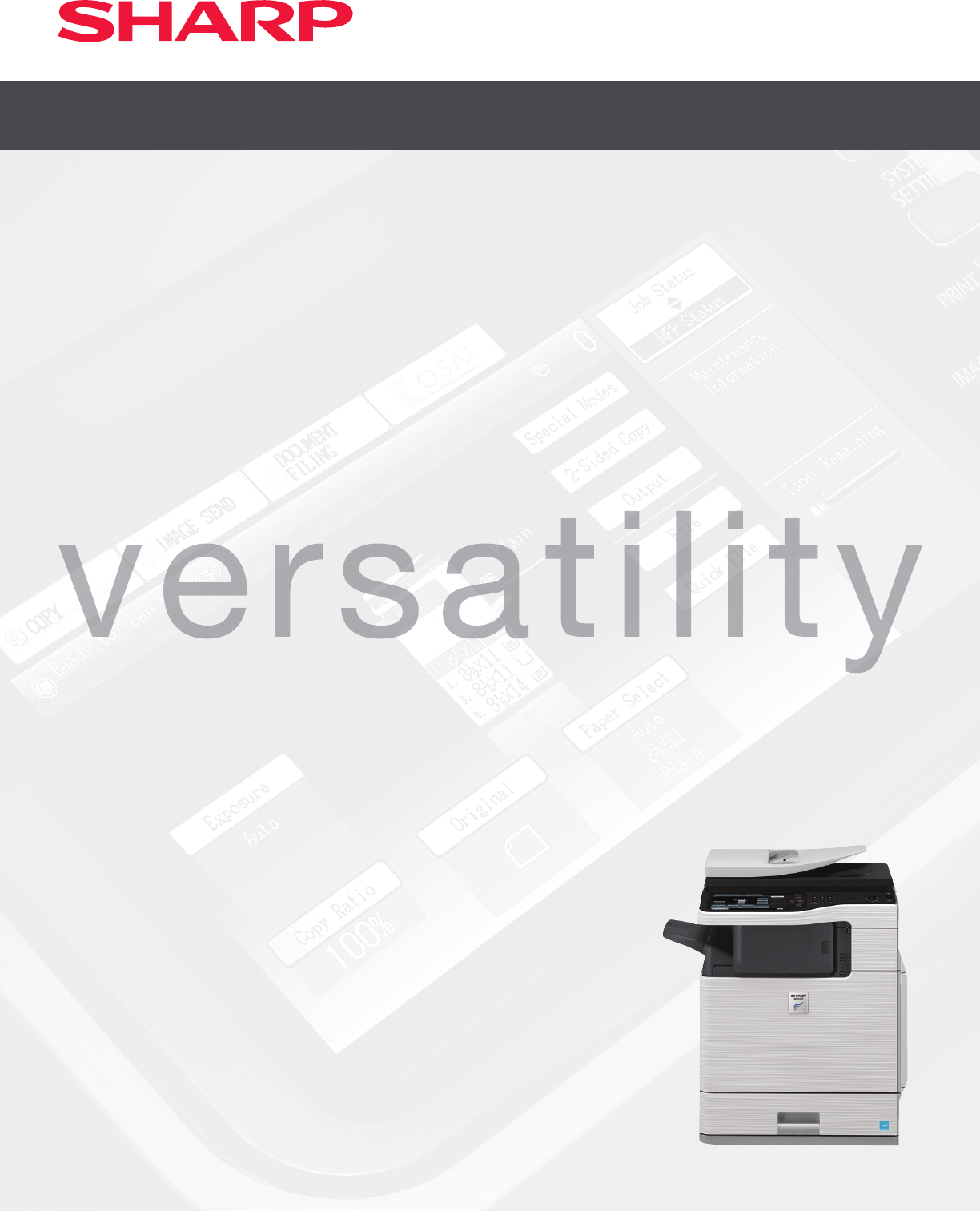 and the industry-leading SHARP SECURITY SUITE to help protect data and control access. In action, its ease and versatility will change your mind about