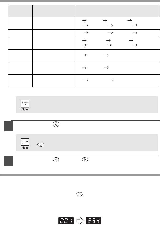 To change the setting or to set another mode, press the clear