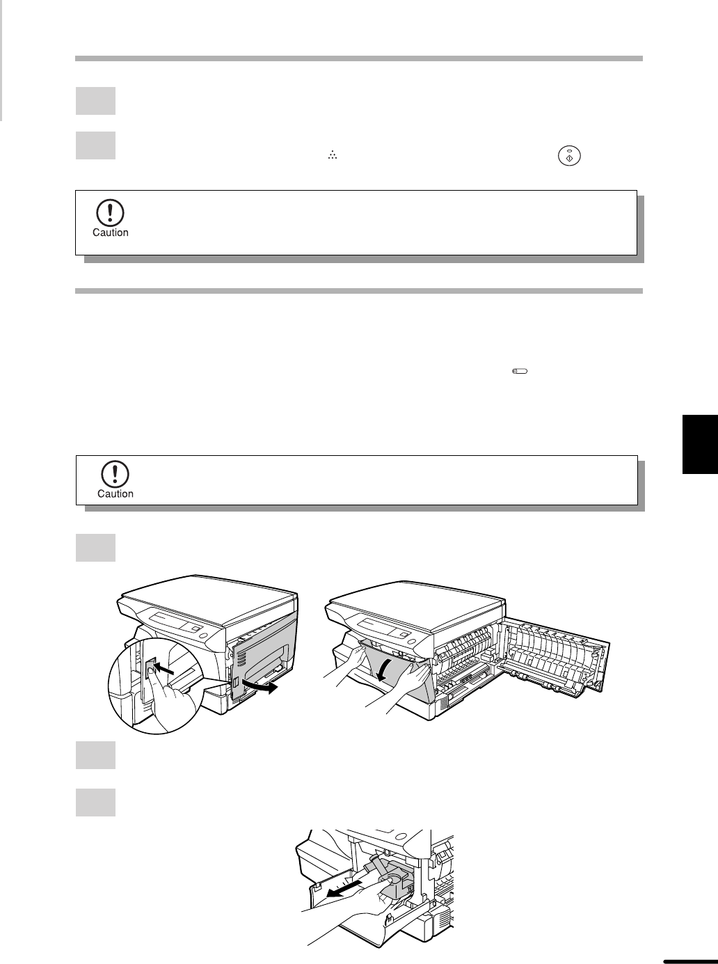 the side cover open button. The indicator will go out and the ready ( ) indicator
