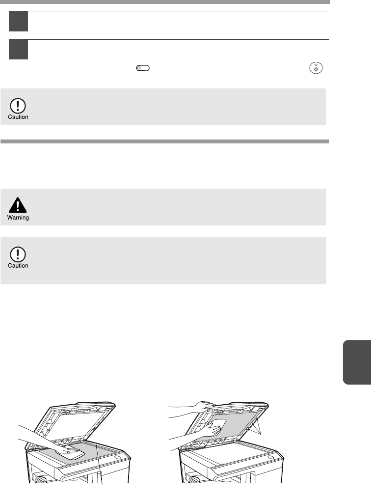 • Before cleaning, be sure to turn the power switch off and remove the