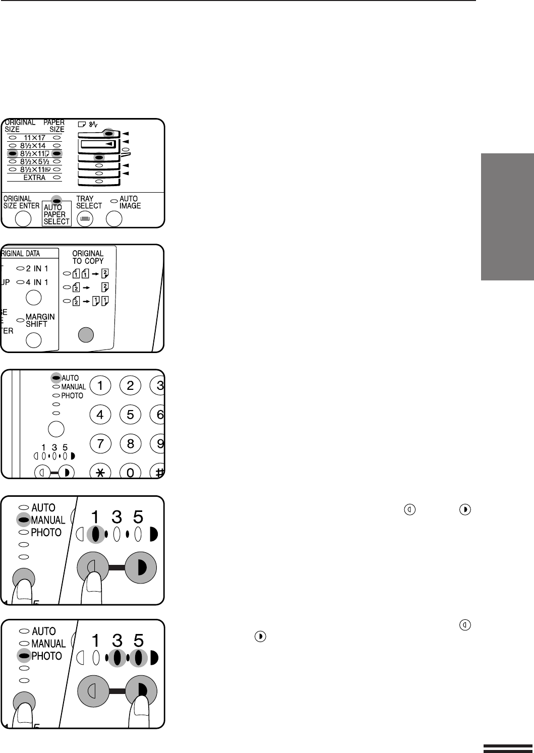 For manual density adjustment, press the AUTO/MANUAL/PHOTO