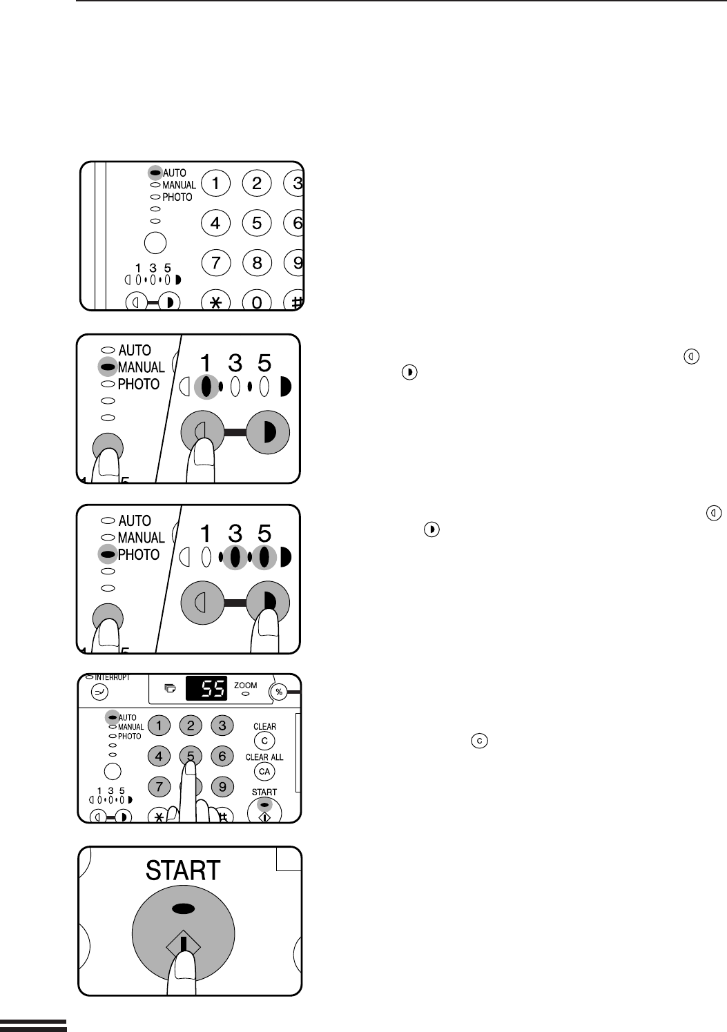 For manual copy density adjustment, press the AUTO/MANUAL/