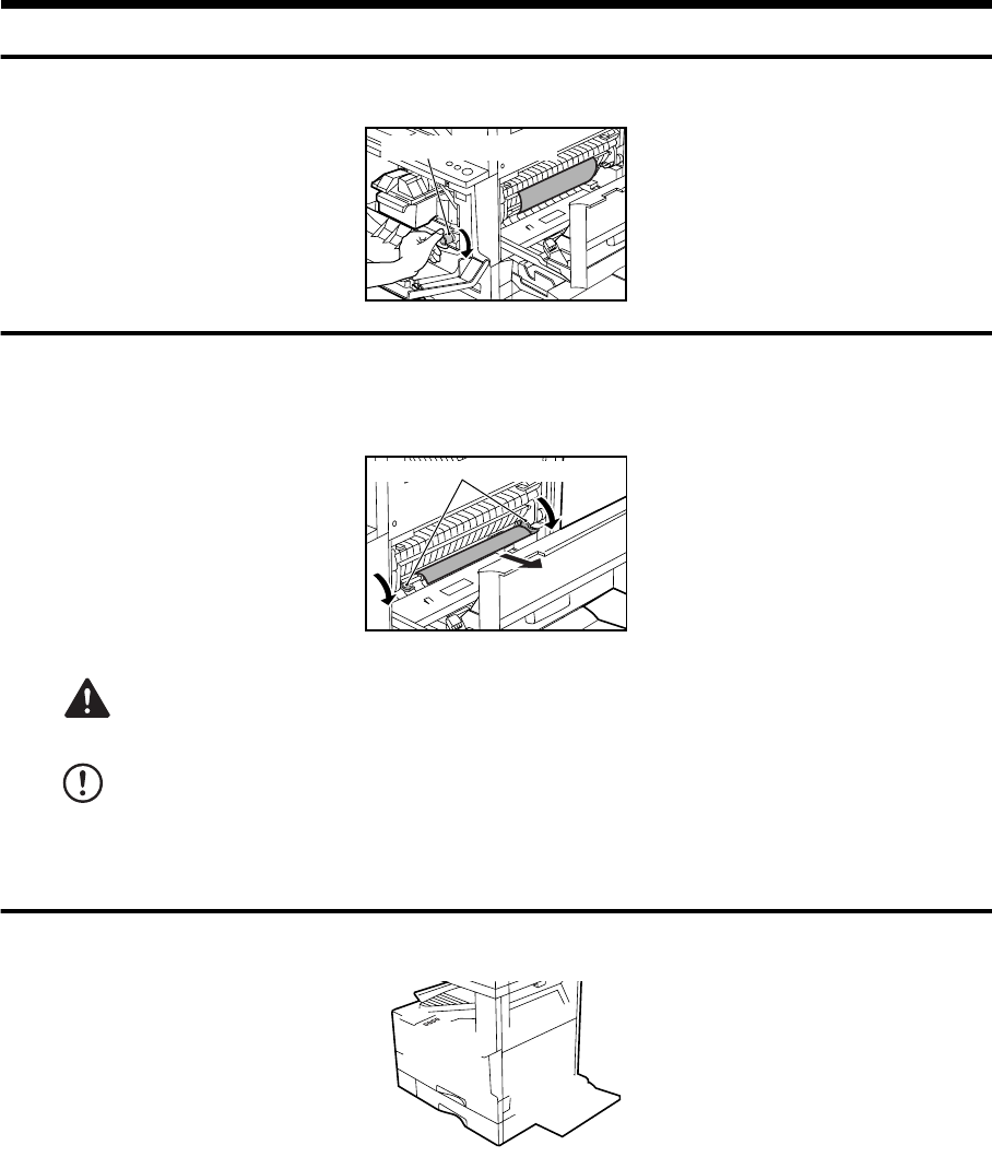 Be careful, there may be unfused toner on the misfed paper which could soil your hands