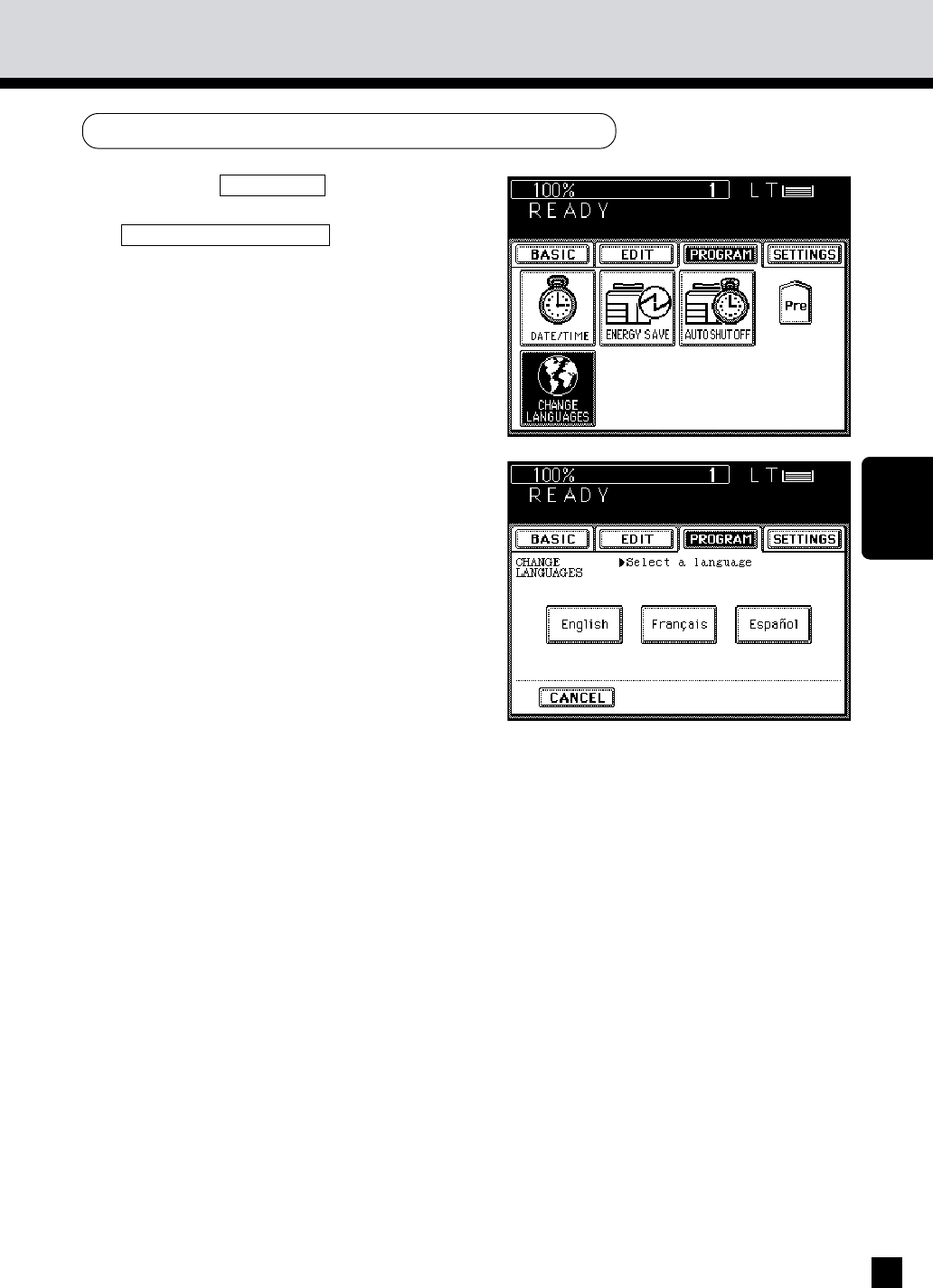 CHANGE OF LANGUAGE ON THE DISPLAY PANEL