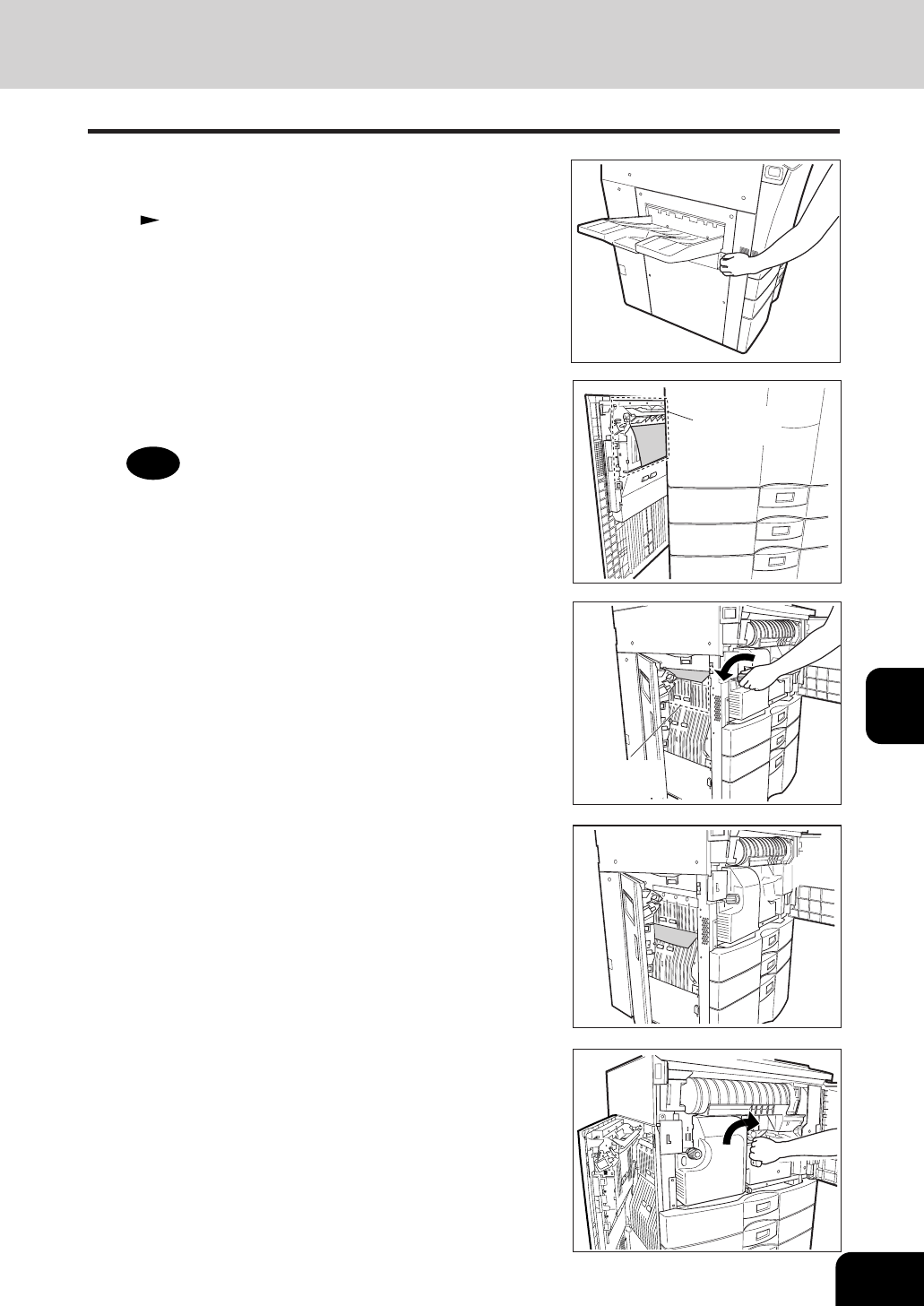 - If any paper is misfed in the position on the right, pull it out.