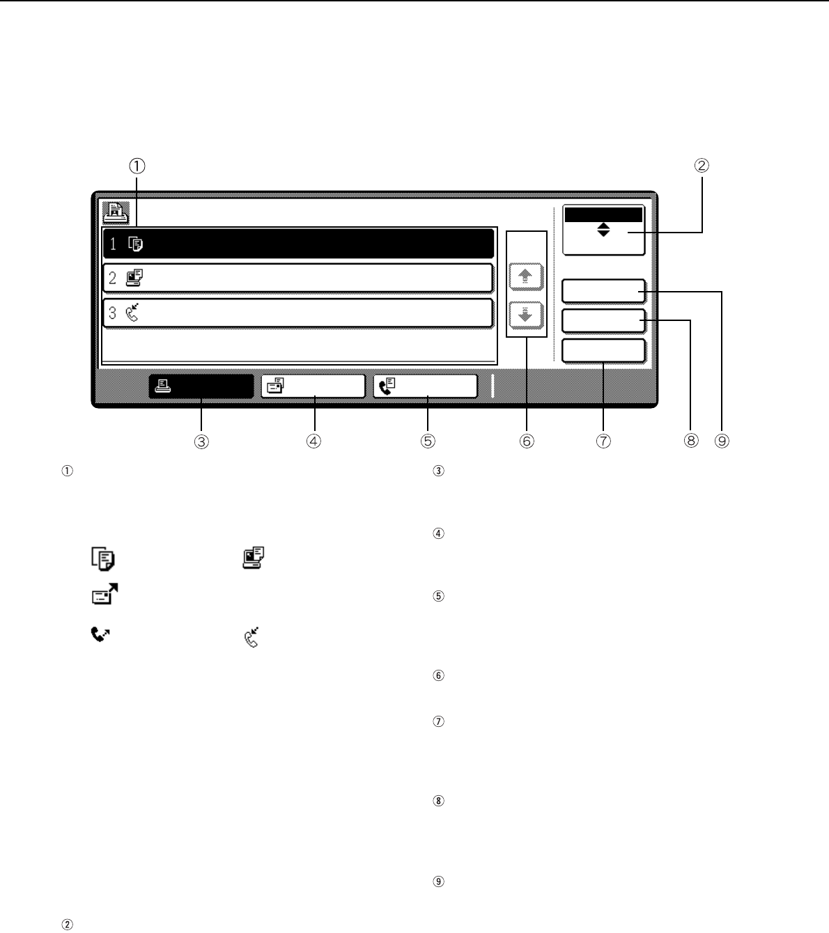 This screen is displayed when the [JOB STATUS] key on the operation panel is pressed.