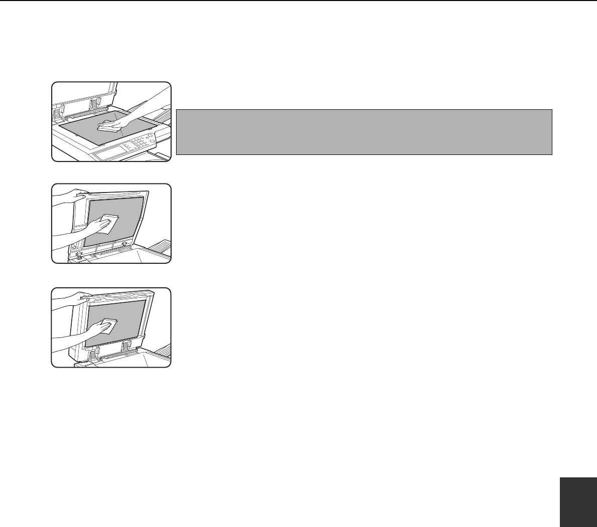 If an optional reversing automatic document feeder is installed, wipe the underside of