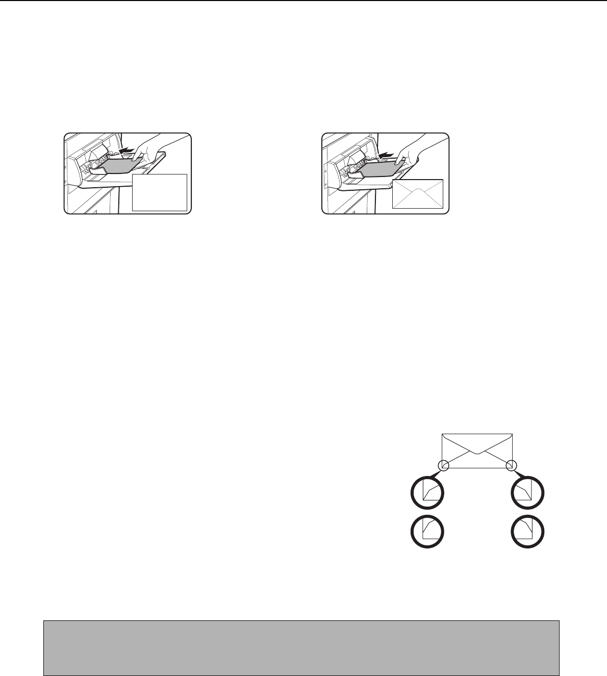 When setting envelopes or postcards in the bypass tray, set them in the orientation shown below.
