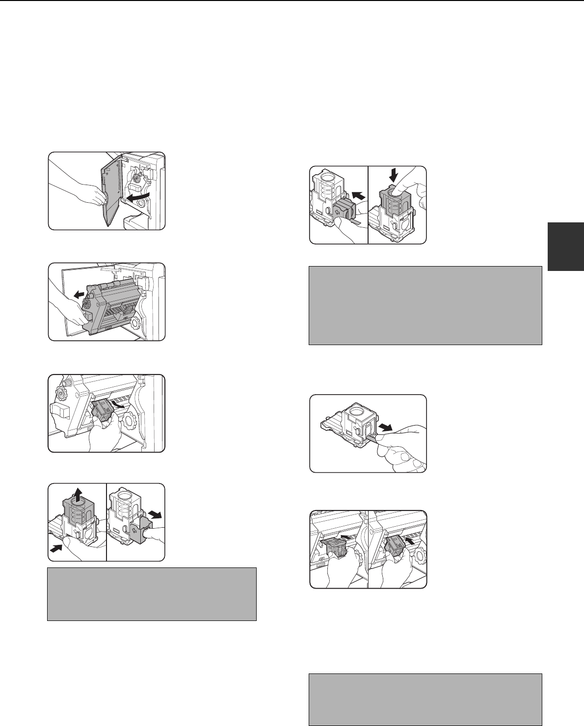 Follow the procedure below to replace the staple cartridge or remove jammed staples.