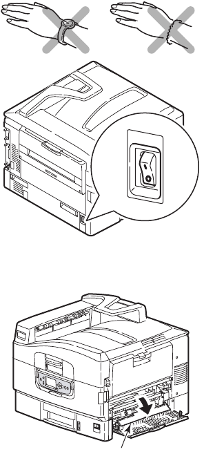 2. Open Tray 1 side cover and pull out the paper guide plate (1).