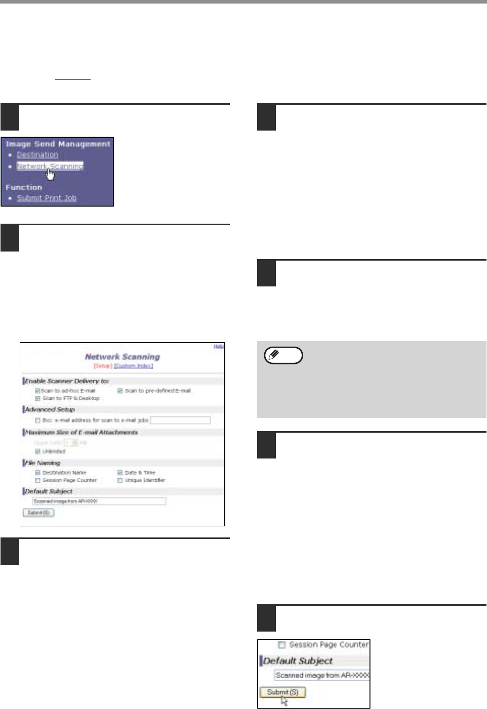 Click [Network Scanning] in the menu frame and configure the required settings. A password is required to access