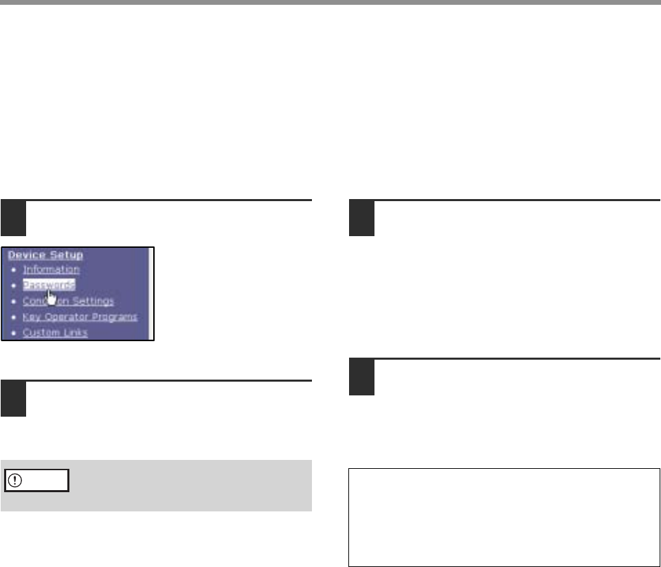 The settings and information programmed in the Web page can be protected by establishing passwords (click