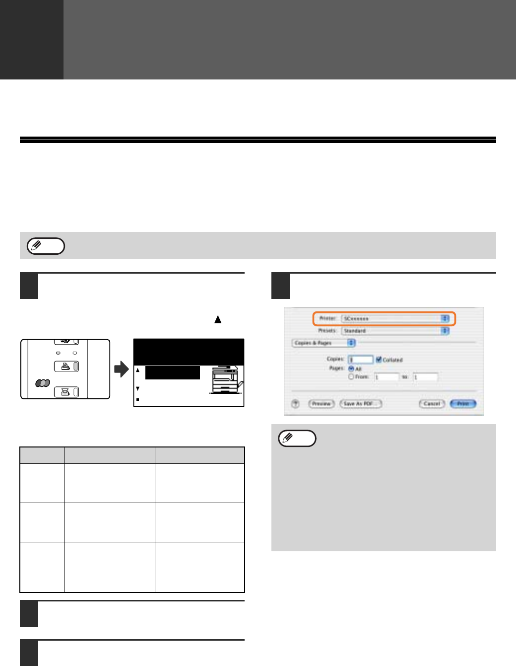 To use the machine as a printer for the Macintosh, the PS3 expansion kit (AR-PK1/N) must be installed and the