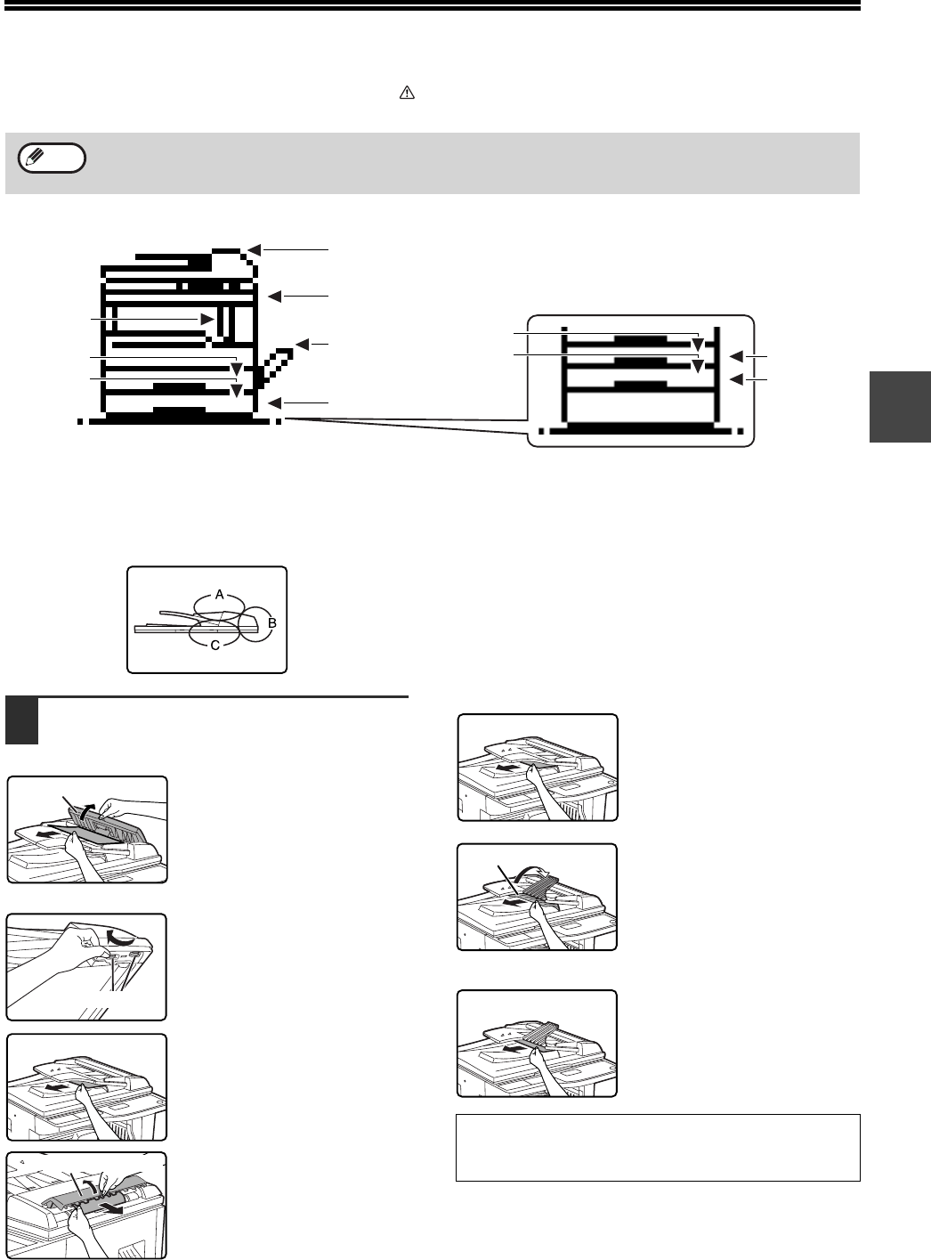If an original misfeeds in the SPF, follow the steps below to remove the misfed original.