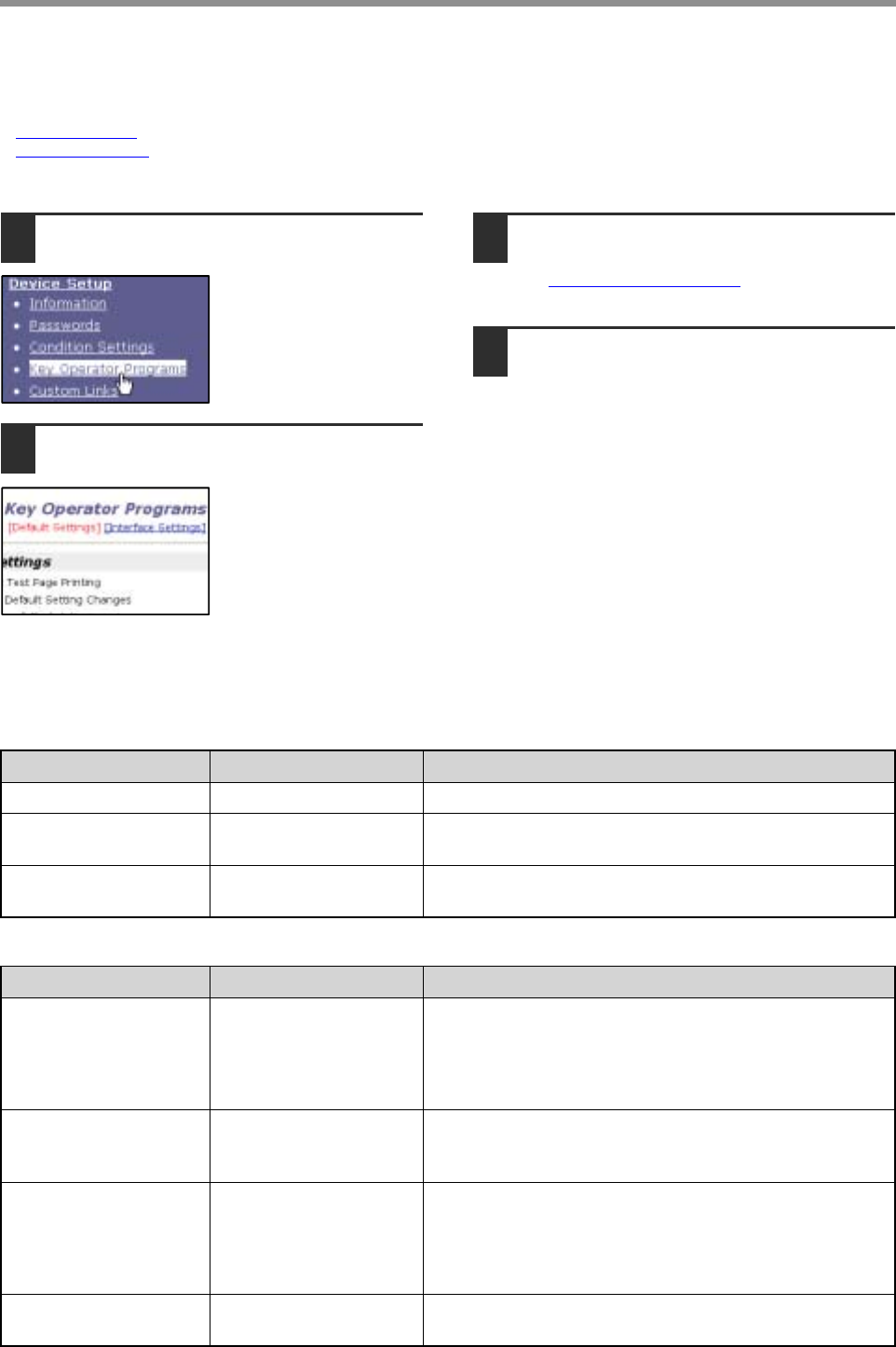 The key operator programs are used to prohibit changes to the [Condition Settings] and to configure interface settings.