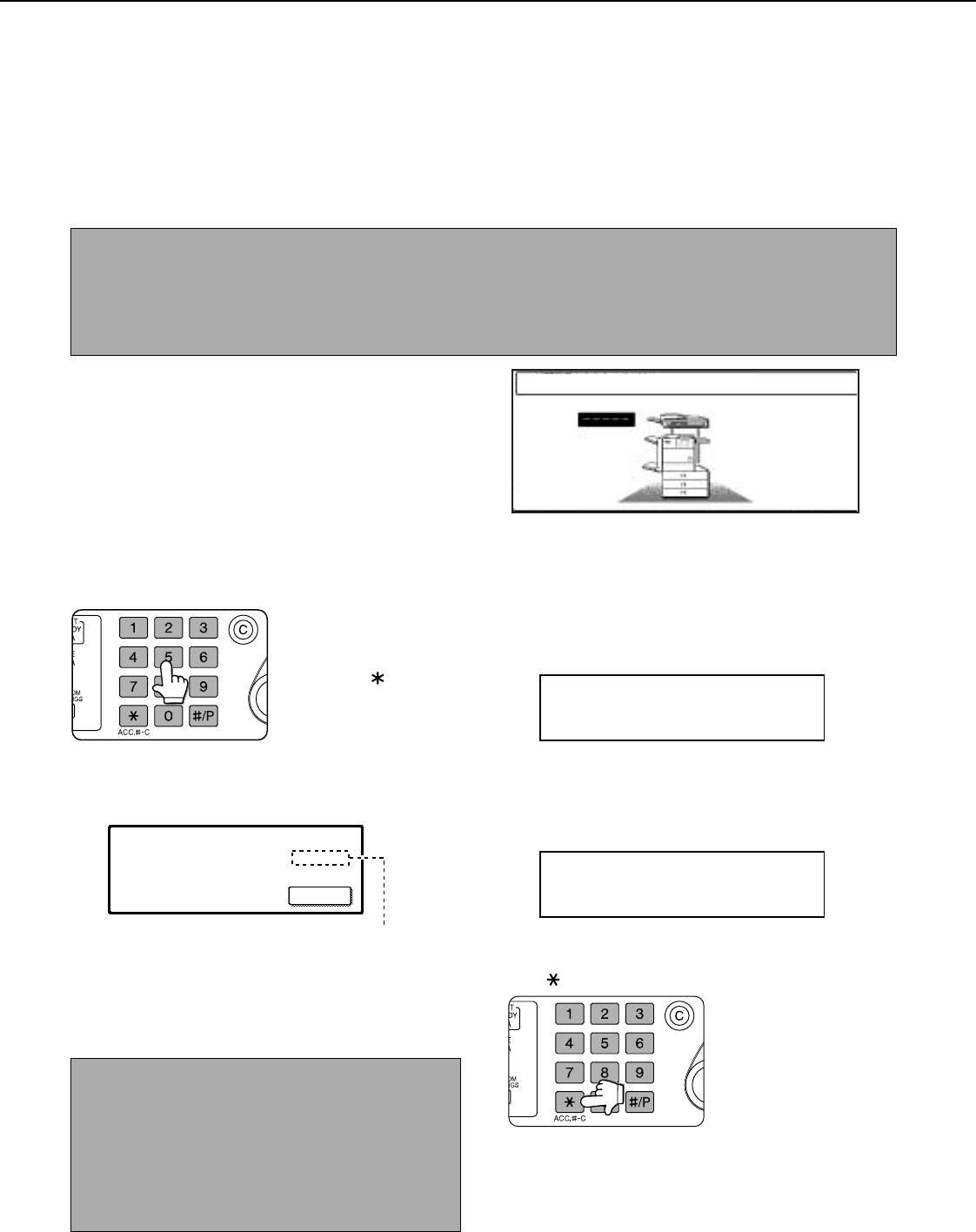 When the above screen appears, enter your 5-digit account number and then begin the copying procedure.