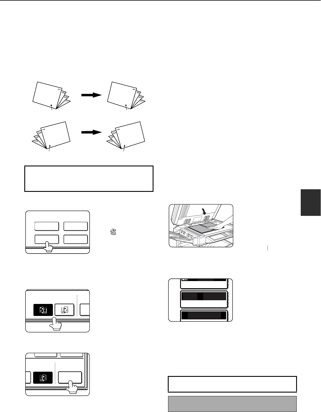front and back sides of the copy paper (four pages are copied onto one sheet of copy paper). This allows the copies