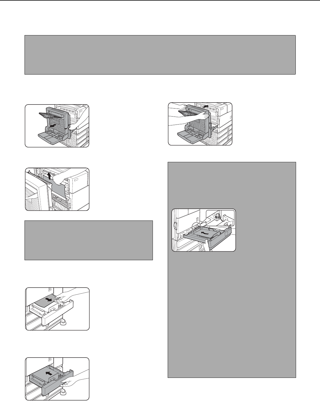 and 2). If you open the tray without checking, the partially fed paper may tear and leave torn pieces in the machine,