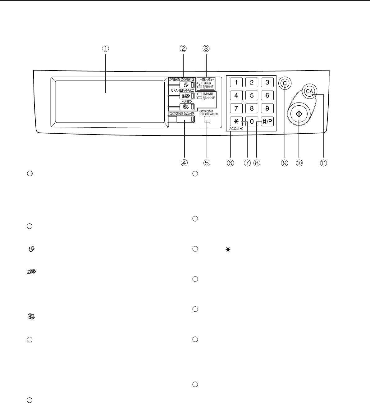 На панели отображаются состояние аппарата, сообщения и