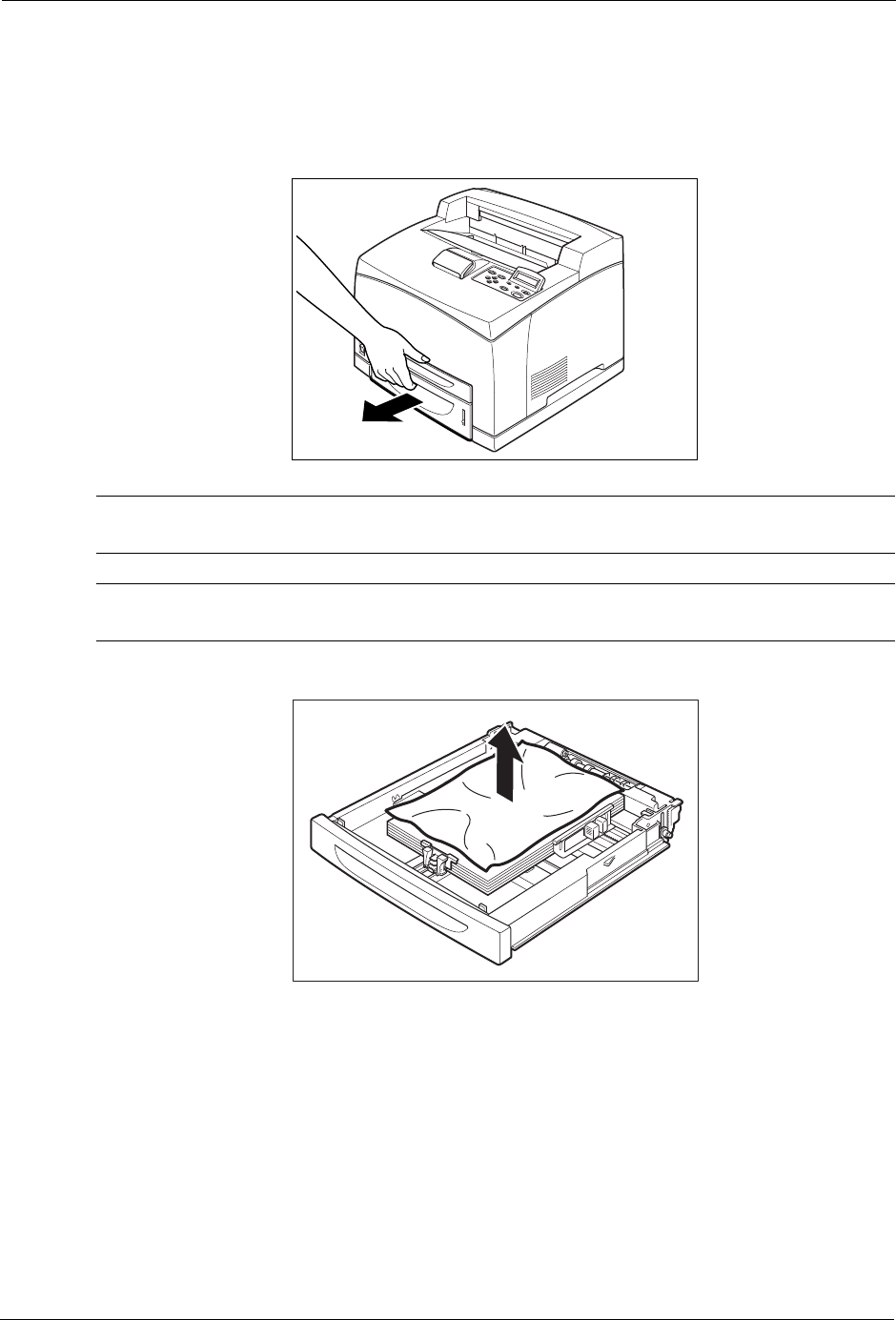NOTE: If the paper is jammed inside the printer and behind the second level paper tray, pull out only the