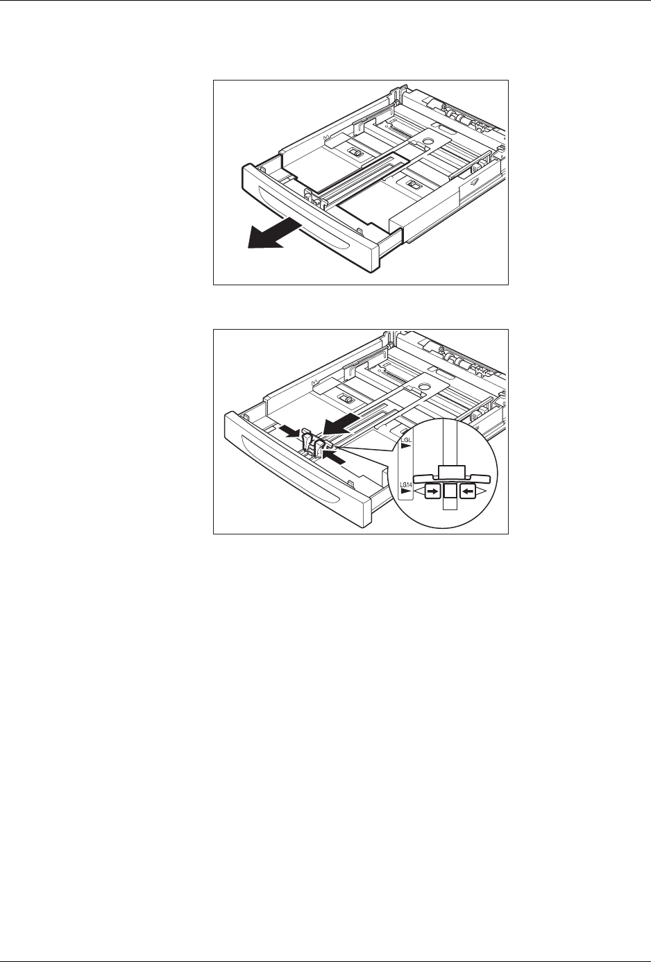 6. Squeeze the right width guide and slide it to the desired paper size.