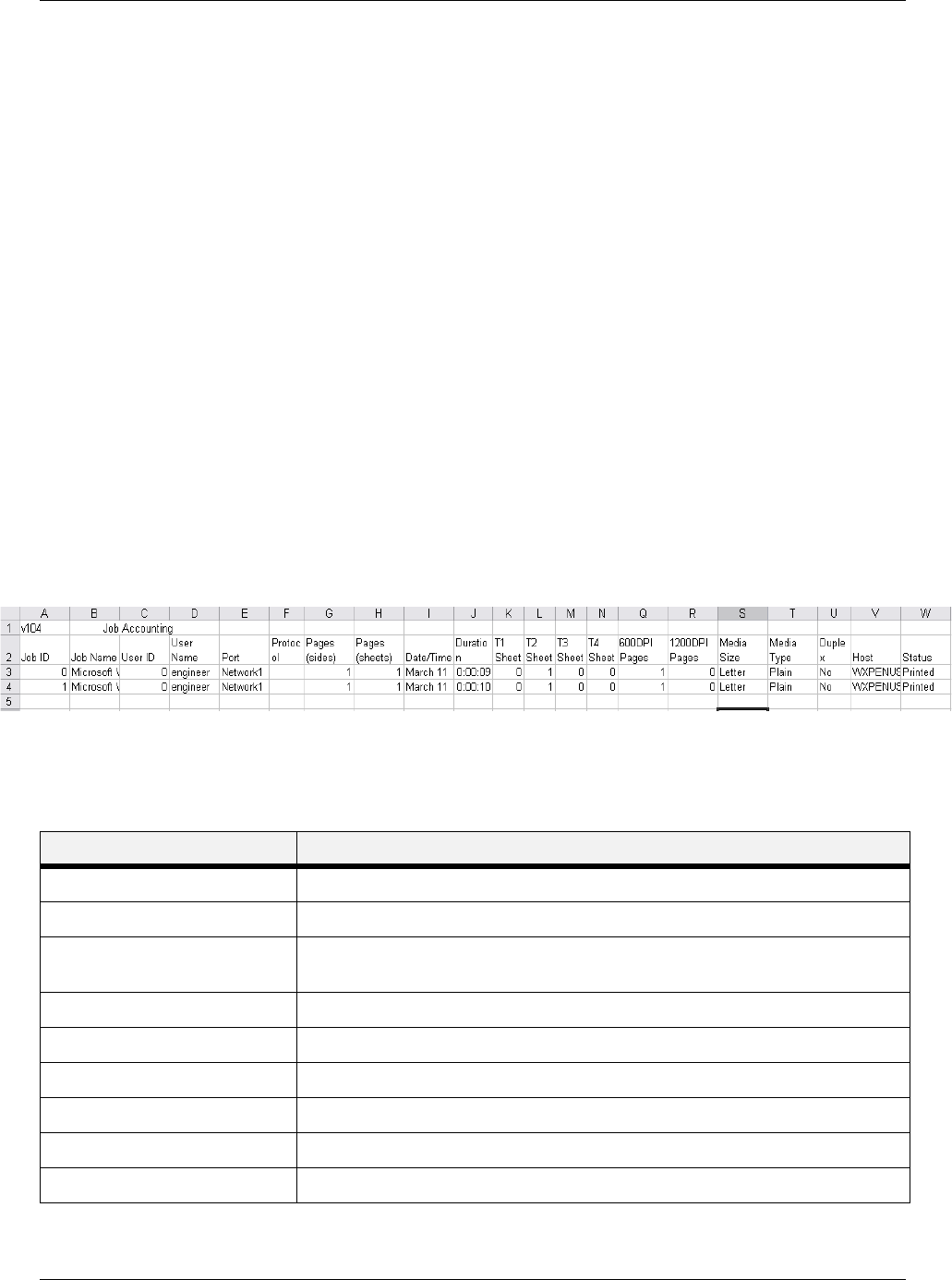 Job accounting information can also be reset to create a clean data sheet. The CSV file contains