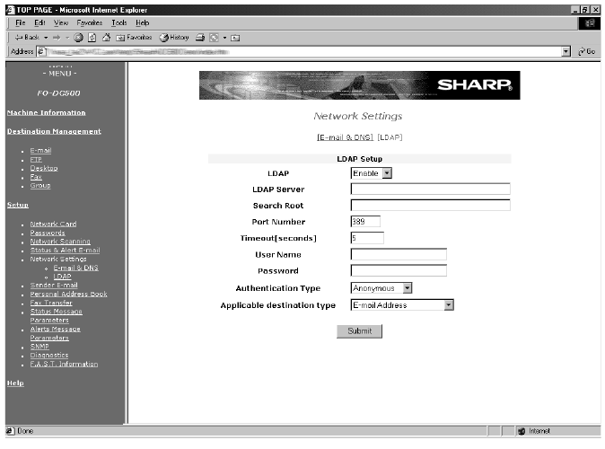 click LDAP under Setup in the menu at the left of the page. The following