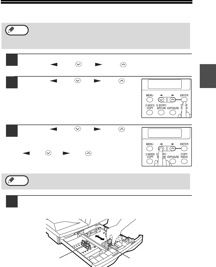 Press the [ ] key ( ) or [ ] key ( ) until "PAPER SIZE"