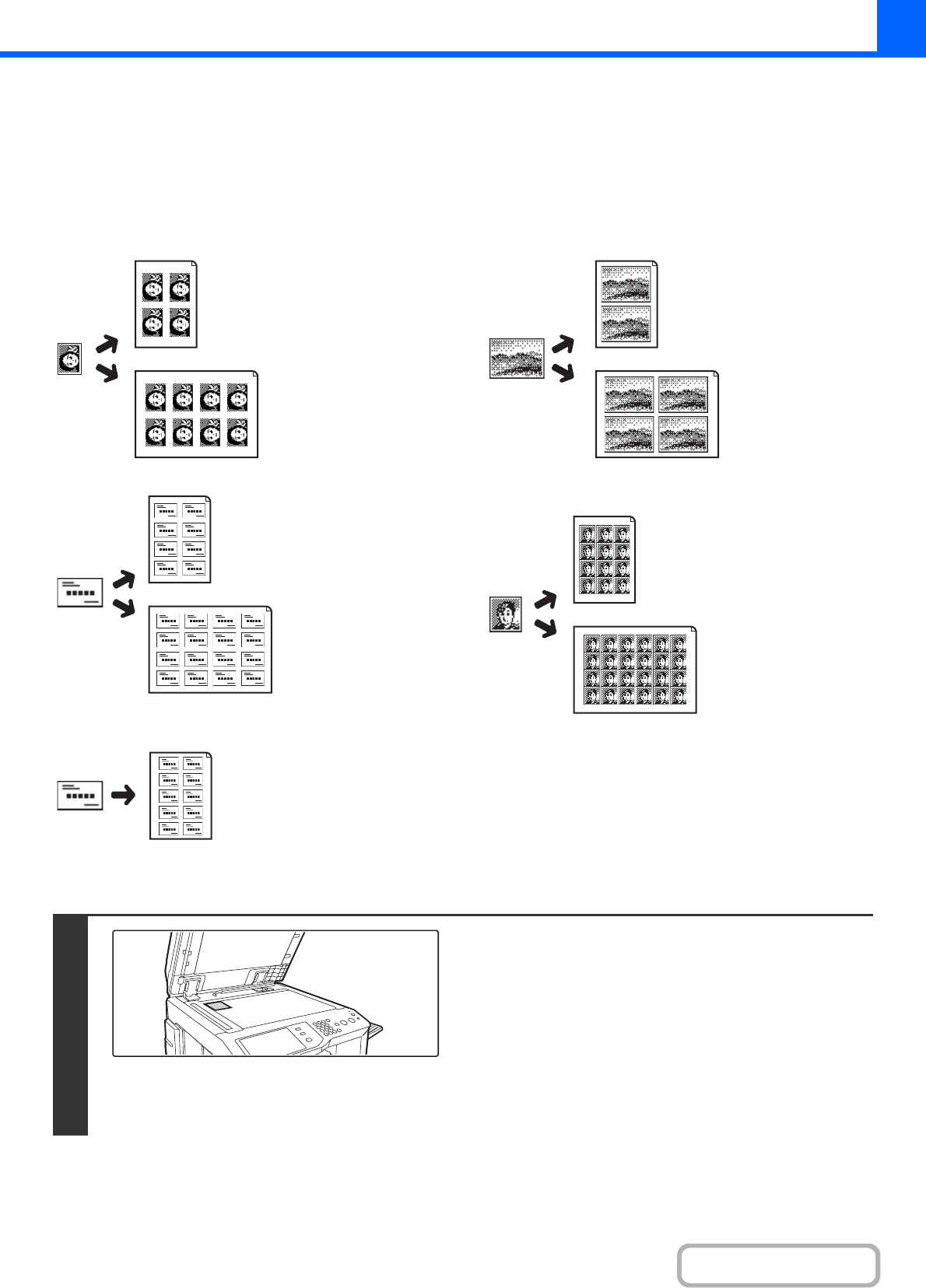 65 mm x 70 mm size or 57 mm x 100 mm size)) on a single sheet of copy paper as shown below. Up to 24 images
