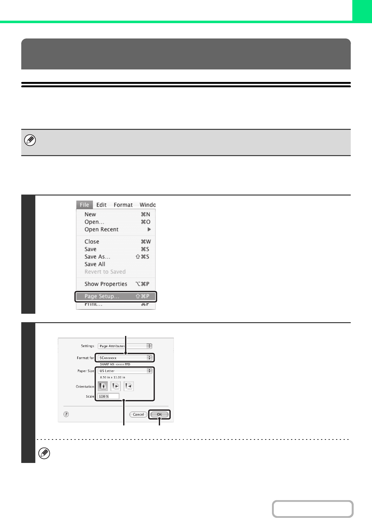 In Mac OS 9, select [Page Setup] from the [File] menu of