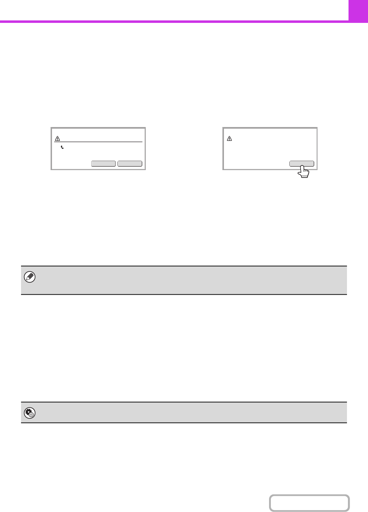 performed to prevent accidental transmission to the wrong destination. This function is enabled in the system settings