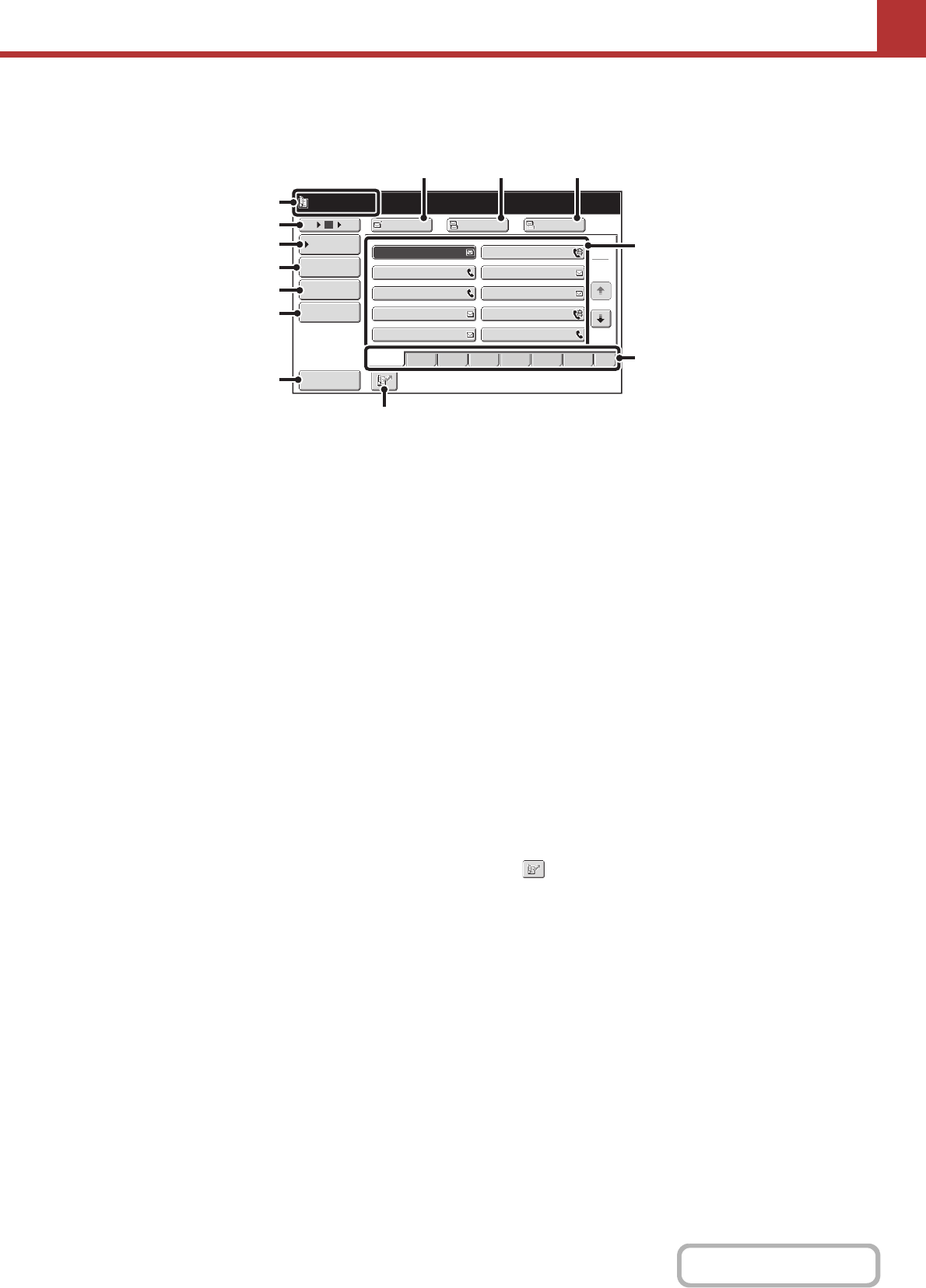 (one-touch keys) displayed in the address book screen.