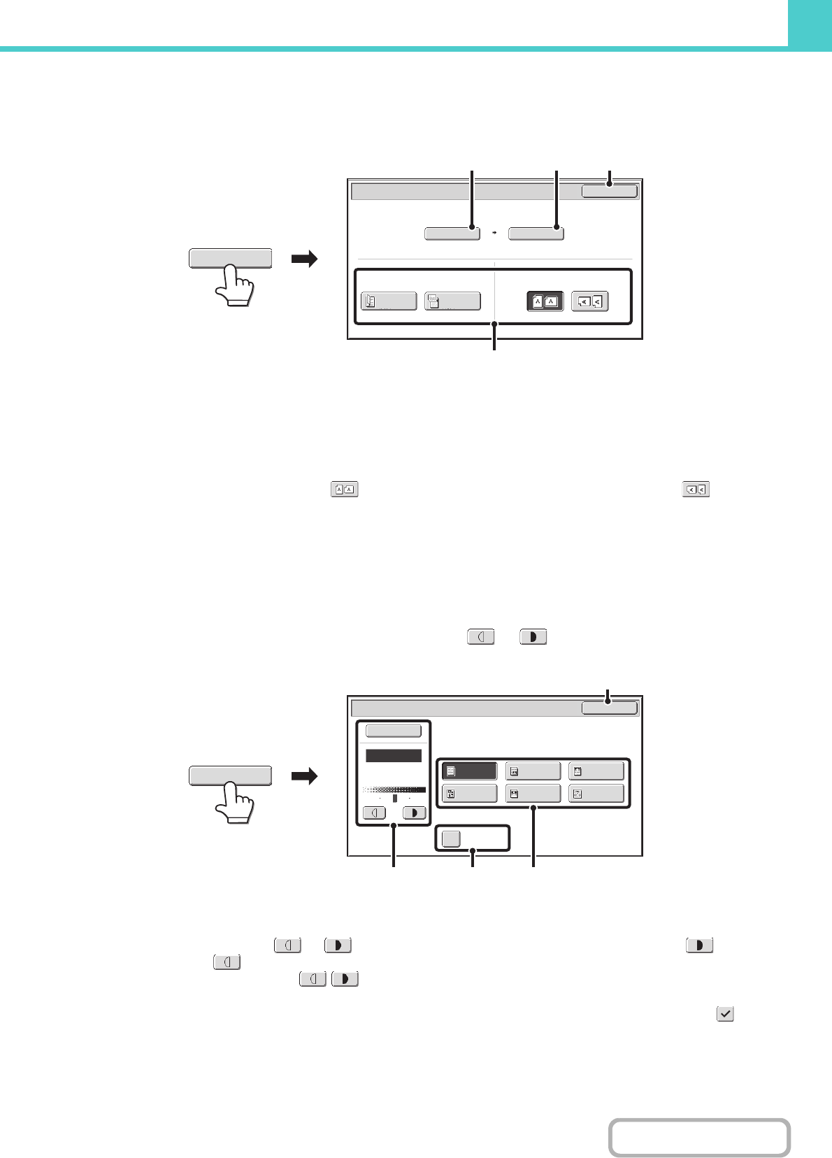 Select an appropriate exposure mode for the original and touch the or key to adjust the exposure level.