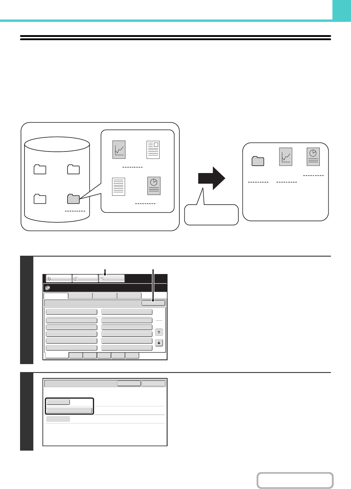 When there are many stored files, it may take time to find a file. The search function of document filing mode can be